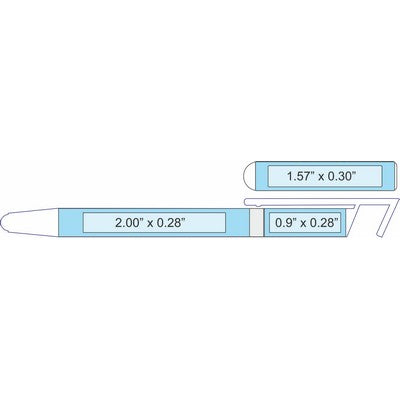 The Best Phone Stand Pen with a large print area on the Clip and 2 areas on the barrel. Get the highest exposure of your Brand or Logo when the pen is in the pocket of your client. 3-IN-ONE , Pen, Stylus and Phone Stand. This pen has a 7mm point Blue ink, a stand out color for documents . Available in metalized look plastic various colors & metalized chrome plastic nose & ring, twist action.Clip Print Area 1.57" x 0.31" & 2 Barrel Areas printing 1 price. 5.5" L x 0.45" Thick x 0.41" Diameter. 5.5" L x 0.45" Thick x 0.41" Diameter