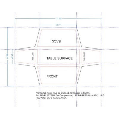 100% Polyester , Table Cover Size: 6FT(79"X112"), 4 sides .Ideal for any eventConferences, Events, Table Covers, Stretched, full color, sublimated. Art to be provided ready to print. 72" W x 29" D x 30" H